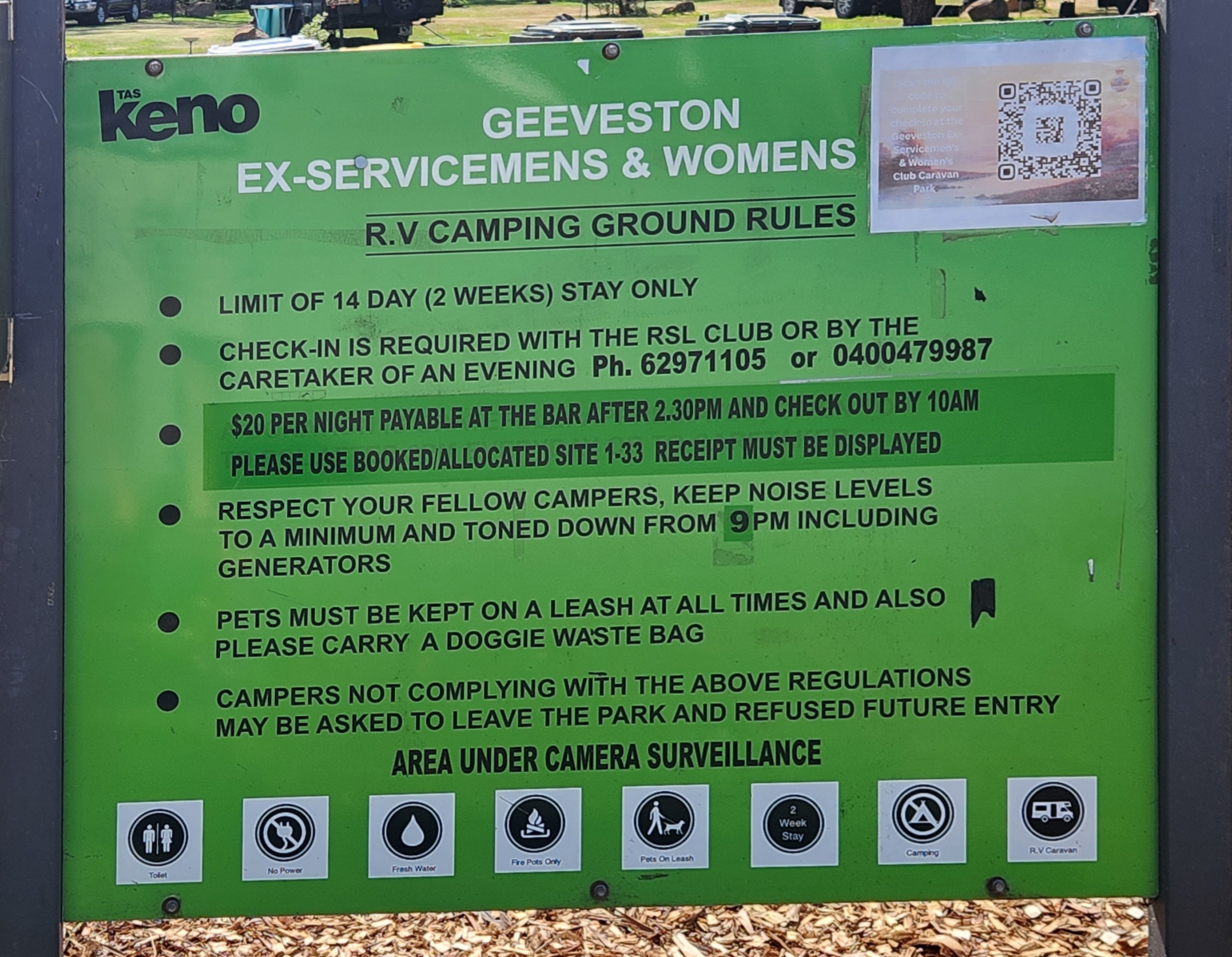 The Geeveston Ex Servicemen & Women’s Club is found approximately one kilometre south of the town centre, on Memorial Drive. With parking available for up to 96 hours, the club makes an ideal camping base while exploring the local area. Fees are set at a low $20 per vehicle per night, with toilets, bins and water available also pets are permitted on leads.