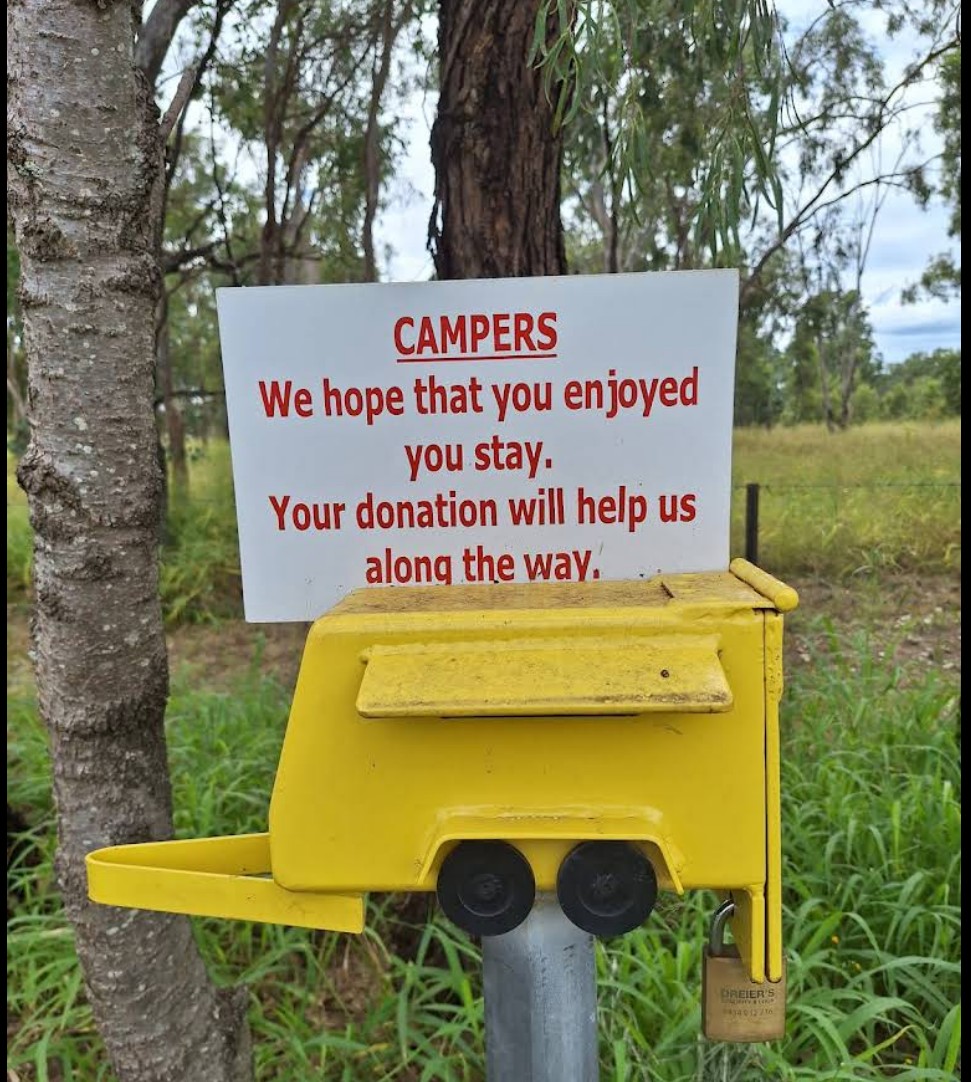 The RV parking area has about 6 to 8 undesignated sites along the fence on the left of the entry with access to a toilet and town water only behind the Clubhouse. The Dump Point is located in Warpole St.